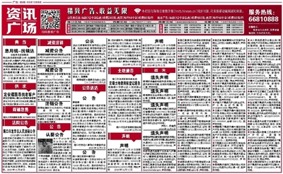 ●吴洋不慎遗失海南景业房地产开发有限公司开具的高燕-清水湾景业3号-六期-K-A1301收据3张,编号分别为:3005269(金额:784710元)、3005433(金额:150万整)、3005434(金额:33万元整),现声明作废。