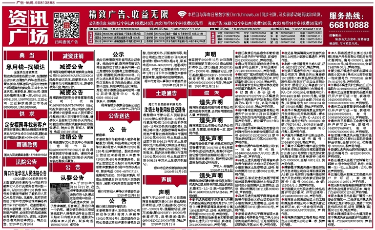 翁泽飞于2020年12月10日在海南日报登琼万渔00189渔业船舶所有权证,(琼万)船登(权)(2019)HY-100003号、国籍登记证,(琼万)船登(籍)(2019)HY-100003号保留使用,注销渔船编码:4690062002120003作废,特此声明