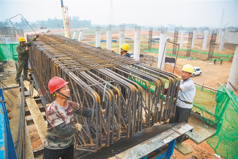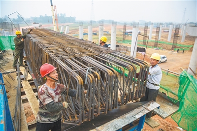 12月11日,在国道G360文临公路定安段施工现场,工人正在盖梁钢筋安装施工。该段工程截至目前已累计完成年度施工计划的98%。据了解,国道G360文临公路主线长度预计为120公里,全线建成后将大大缩短临高与海南东北部市县的交通距离。