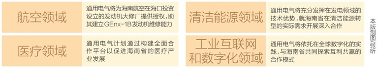 根据合作备忘录,通用电气与海南省将结合双方的发展战略、资源禀赋、政策优惠、技术优势等因素,在未来五年加强航空、医疗、清洁能源以及工业互联网和数字化等关键领域的合作。