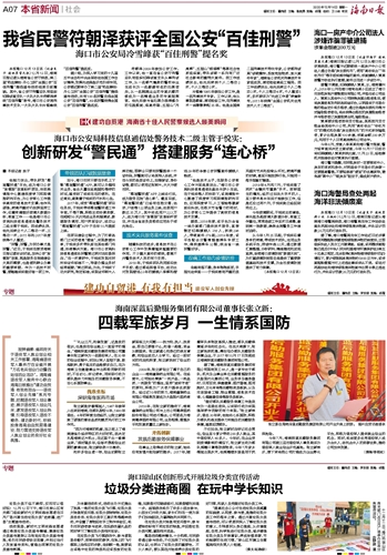 如今,海口市民只要在手机上下载“椰城警民通”APP,就可以办理相关业务,省去大量往返跑腿和等待的时间,感受到了实实在在的便利。在这背后,凝聚着于悦实的汗水和心血。