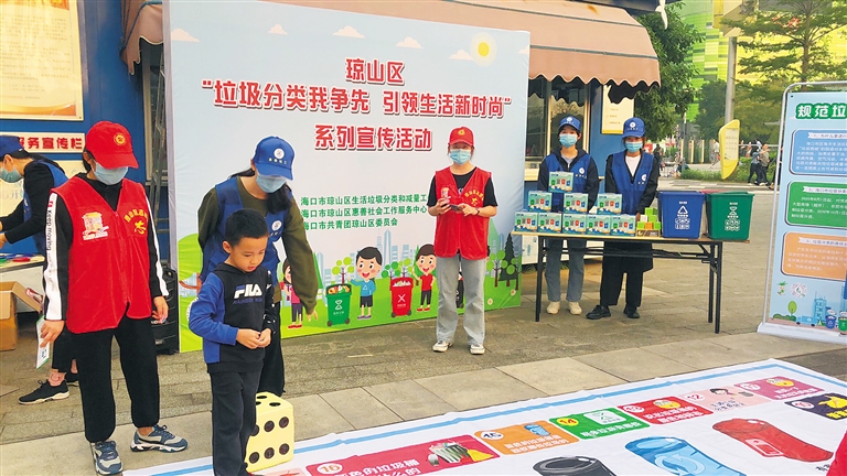 垃圾分类不但不麻烦,反而可以很好玩!12月12日下午,海口市琼山区有关部门组织新时代文明实践志愿者在日月广场开展生活垃圾分类“进商圈、进广场”主题宣传活动。