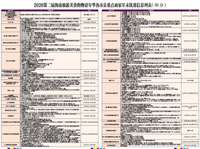 2020第二届海南旅游美食购物嘉年华各市县重点商家年末优惠信息列表(部分)