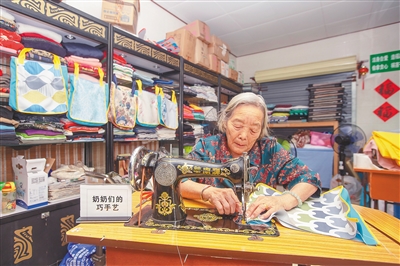 虽然年岁已高,可赵月英依旧心灵手巧,她把捡拾回来的布料,或者是别人捐赠的废弃衣物,缝纫成环保布袋,一天最多能制作将近30个。制作好的环保布袋,赵月英会送给来这里参观学习的市民、游客,还加上一句叮嘱:“记得少用塑料袋,多用环保袋哦!”3年来,赵月英已经累计送出了三千个布袋,她的事迹最近被央视点赞。