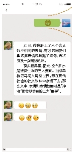不过,如果你还停留在纯粹的“看图说话”阶段,那么很大可能会被当成21世纪的“山顶洞人”。表情文化的博大精深不仅在于言有尽而意无穷,更在于“过山车式”的含义解读。比对话时没有表情更可怕的,是双方对同一个表情相去甚远的解读。在线社交话语体系的构建,正在要求沟通的双方拥有共通的意义空间,但这往往也是横亘在老中青三代之间的“马里亚纳海沟”。无论什么年龄和职业,精准地使用和理解表情,已经成为新社交时代的必修课。