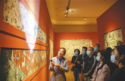 第285窟的五百强盗成佛因缘、第257窟的鹿王本生故事画、第329窟的夜半逾城、第220窟的东方净土变……此次艺术展,敦煌研究院挑选出的一幅幅精品壁画,足以让观众感受到敦煌艺术的博大精深。
