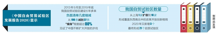 这是2013年9月至2019年底,我国自贸试验区建设“成绩单”亮点之一。一“减”一“增”之间,可以窥见这块改革开放“试验田”释放的活力之大。