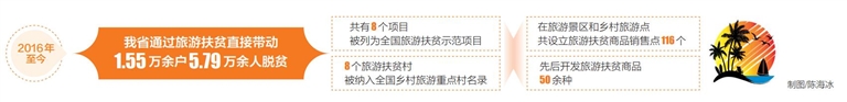 近年来,我省以增加贫困人口收入、增强贫困地区自我“造血”能力为目标,加快推进旅游扶贫工作,深入挖掘贫困地区乡村旅游发展潜力,因地制宜发展乡村旅游,通过建立“旅游+扶贫”新模式助力脱贫攻坚。