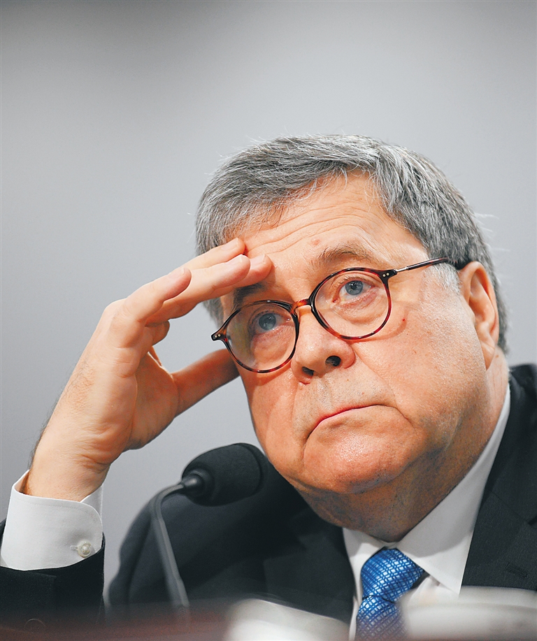 这是2019年4月9日,美国司法部长巴尔在华盛顿出席国会听证会。