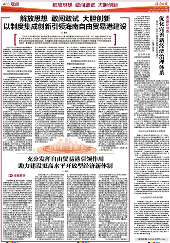 充分发挥自由贸易港引领作用 助力建设更高水平开放型经济新体制