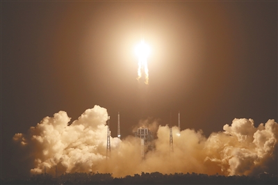 中国在海南文昌航天发射场,用长征五号遥五运载火箭成功发射“嫦五”探测器,并将其送入预定轨道。