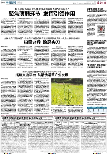 为更好地利用忧遁草,发挥忧遁草独特的经济效益、生物效益、品牌效益,由五指山市人民政府和海南日报报业集团联合主办的海南(五指山)产业发展论坛将于12月20日在该市水满乡举行。
