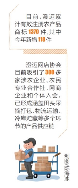 作为我省的农业大县,澄迈通过“商标富农”工程,积极打造农特产品品牌,将品牌农业优势转化为农户增收优势,为电商产品上行提供品质保障。