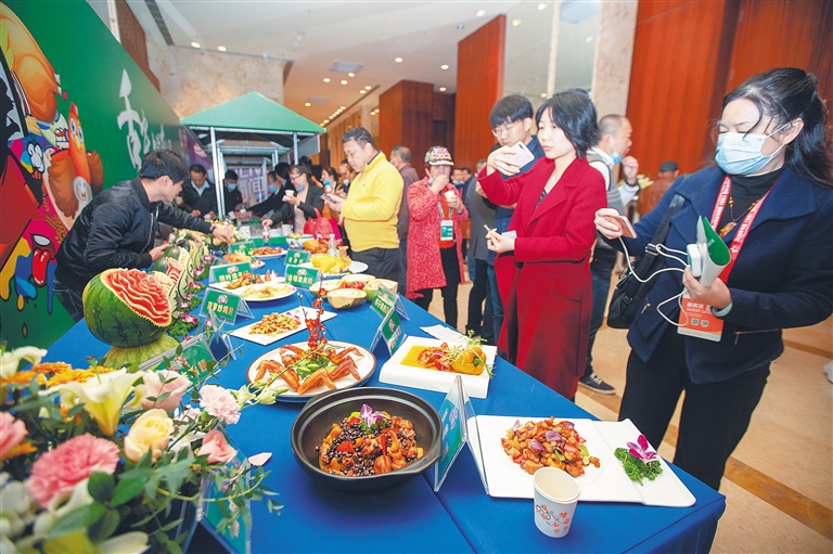 本报海口12月18日讯(记者王培琳 周晓梦)姜爆鸡、咖啡香焖鸡、西柠炸鸡脯……以屯昌功夫鸡为食材,做出的12道色香味俱全的菜式,引得现场观众品尝、拍照,场面十分火热。12月18日上午,在2020海南自贸港与热带农业峰会现场,临高和屯昌分别进行当地特色美食推介和“舌尖上的屯昌鸡系列”推介,引得现场嘉宾纷纷围观。