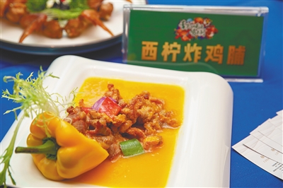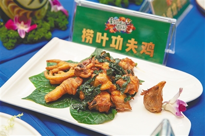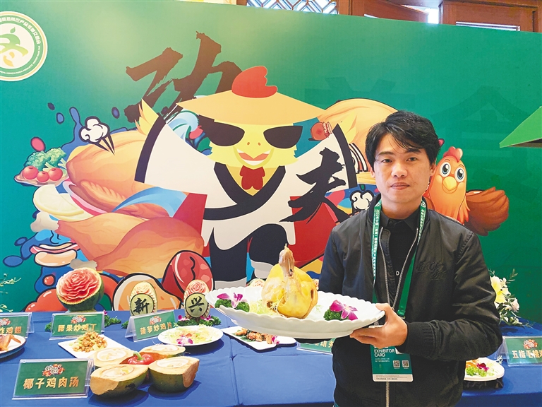 当天上午,一场五行桩表演拉开了推介会的序幕,以绿色为主题的拱门下,排列着几个展位,展位上排列着以屯昌鸡为主题的菜肴:姜爆鸡、咖啡焖鸡、西柠炸鸡脯、捞叶功夫鸡……精美的菜肴吸引着过往的嘉宾与美食家驻足品尝、拍照。