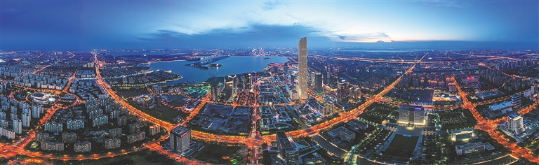 2020年,面对严峻复杂形势、艰巨繁重任务特别是新冠肺炎疫情严重冲击,我国交出了一份人民满意、世界瞩目、可以载入史册的答卷,成为全球唯一实现经济正增长的主要经济体。图为苏州工业园区夜景。 新华社发