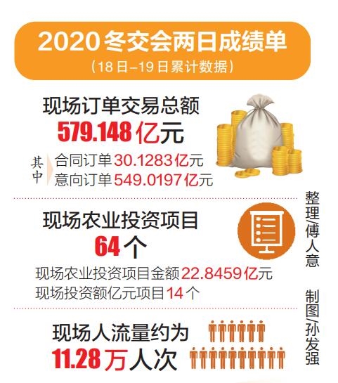 这边,许多展位邀请市民品尝特色农产品,参展商通过互动游戏、歌舞表演等各种“花式秀”吸引消费者眼球;那边,采购商和参展商热火朝天地洽谈。据统计,截至19日,冬交会现场人流量累计约为11.28万人次,展馆内人气十足,活力四射。