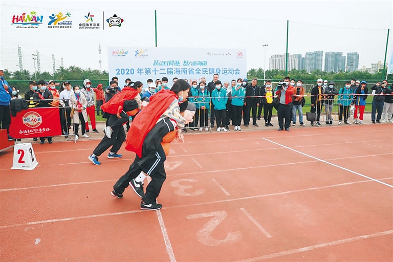 本报海口12月19日讯 (记者王黎刚)19日上午,以“跃动自贸港 魅力新海南”为主题的2020年第十二届海南省全民健身运动会开幕式在海口世纪公园举行。