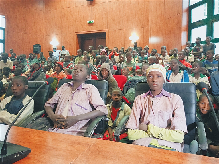 12月18日,在尼日利亚卡齐纳州卡齐纳市,获释的学生出席为他们举办的迎接仪式(手机照片)。