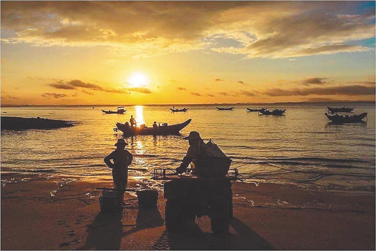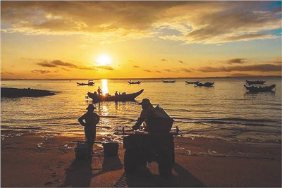 出海自然是要盼着一个好收成,在海南的俚语中,有许多都自带着海的味道。海南的渔民对每一个月份都有着细致的观察,海边的人都知道“八月晒死鱼虾,冬天就要寒冷”“南风十月来报送,港北舅爹赶无盐”。捕鱼,靠的就是对寒流暖流的判断,如果哪年夏天热得不正常,冬天就一定会冷,寒流来了,能不能有好收成则尚未可知;如果十月份天气转凉,突然有温暖的南风吹过,那么,暖风之后必然是暖流,顺着这股海流捕鱼,一网下去,鱼可以多到把海水里的盐都挤走。都说打渔是靠天吃饭,天当然重要,但是人的智慧往往是可以逆天的。