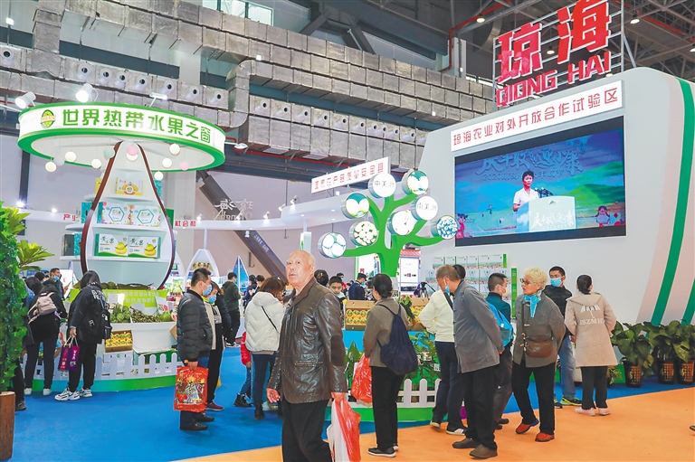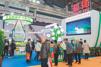 冬交会期间,琼海展馆以热带水果和农旅结合为主题,结合美丽乡村建设,设立了热带水果之窗打卡点,新优热带水果品种、种苗展示区和美丽乡村会客厅,成为本届冬交会的一大亮点。在打卡点,路过游客纷纷停下来拍照打卡,咨询参展企业海南盛大现代农业开发有限公司展示的水果名称、价格等详细信息,并在美丽乡村会客厅洽谈合作,成为本届冬交会靓丽的风景。据不完全统计,冬交会期间打卡拍照、咨询人流量累计超过10余万人次。