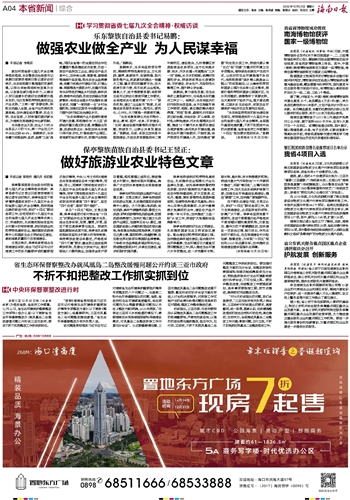 第011版:海南“十三五”经济社会发展成就专题