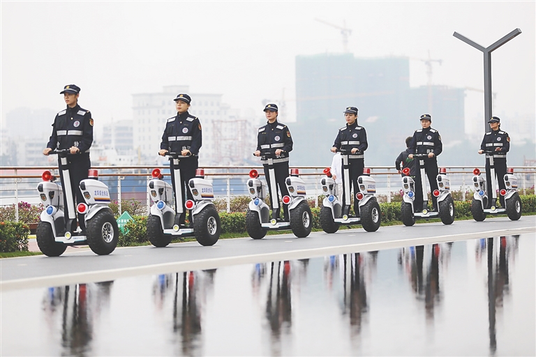 据悉,为了适应文明城市管理执法需要,为市民和游客提供人性化服务,龙华区专门投入数十万元,采购了一批电动平衡执法车和电瓶车等设备,以便执法人员到海口湾等一些不方便机动车进入的景观路进行巡查执法。