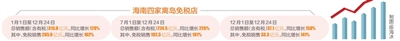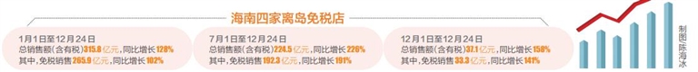 据统计,12月1日至12月24日,海南四家离岛免税店总销售额(含有税)37.1亿元,同比增长158%。其中,免税销售33.3亿元,同比增长141%。1月1日至12月24日,海南四家离岛免税店总销售额(含有税)315.8亿元,同比增长128%。其中,免税销售265.9亿元,同比增长102%。