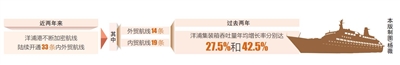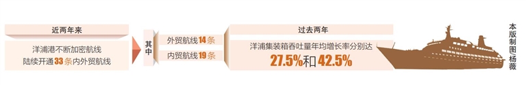 近两年来,洋浦港抢抓国家建设西部陆海新通道国际航运枢纽的机遇,在中远海运集团的大力支持下,不断加密航线,吸引国内外集装箱货源聚集,初步形成以洋浦港为区域集装箱枢纽港的航线框架,陆续开通33条内外贸航线。其中外贸航线14条,开通海南首条洲际航线洋浦-澳洲线,实现越南、新加坡、缅甸、马来西亚、泰国、孟加拉国等东南亚国家全覆盖;内贸航线19条,连通北部湾、珠三角、长三角、华北、东北等国内沿海港口。此外,还搭建了以洋浦港为中转港的省内“水水中转”航线网络,相继开通洋浦-三亚、洋浦-八所驳船支线,各种航线要素的不断聚集,有效地促进集装箱汇集,箱量提升成效明显。