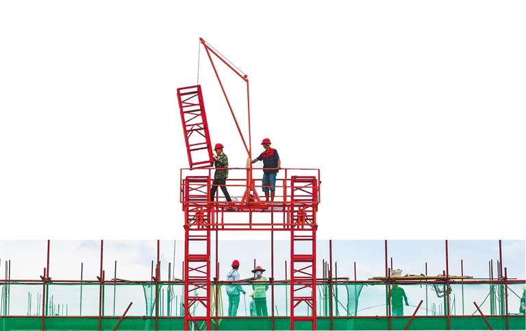 昌江黎族自治县欧兰德毛豆南繁产业园项目工地,工人在建设厂房和办公楼。本报记者 陈元才 摄