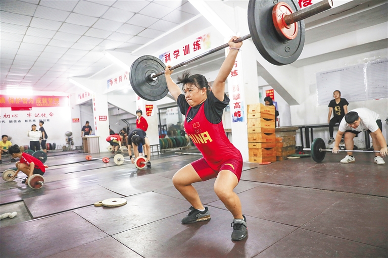 12月24日,在屯昌县屯城镇,哈尔滨市女子举重队员开展冬季训练。