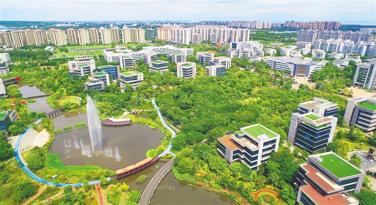 多年来,海南生态软件园坚持围绕绿色科技主线,不断创新和升级产业,确定了“数字贸易策源地、数字金融创新地、中高端人才聚集地”的定位,重点发展“一区三业”,即区块链试验区、数字文体、数字健康、数字金融等重点产业。同时,不断完善相关配套,建成包括教育、医疗、商务、居住等于一体的产业微城,让企业“在公园里工作,在生活中创新”。