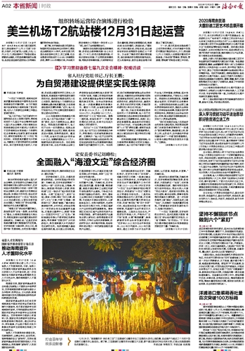| 海南日报 本省新闻时政 002 2020-12-281 2020年12月28日 星期一 |