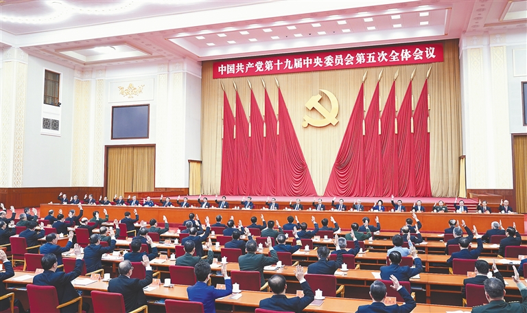 10月26日至29日,党的十九届五中全会召开。全会审议通过的《中共中央关于制定国民经济和社会发展第十四个五年规划和二〇三五年远景目标的建议》,深入分析我国发展面临的国际国内形势,提出了到2035年基本实现社会主义现代化远景目标,明确了“十四五”时期我国发展的指导方针、主要目标、重点任务、重大举措,是开启全面建设社会主义现代化国家新征程、向第二个百年奋斗目标进军的纲领性文件。