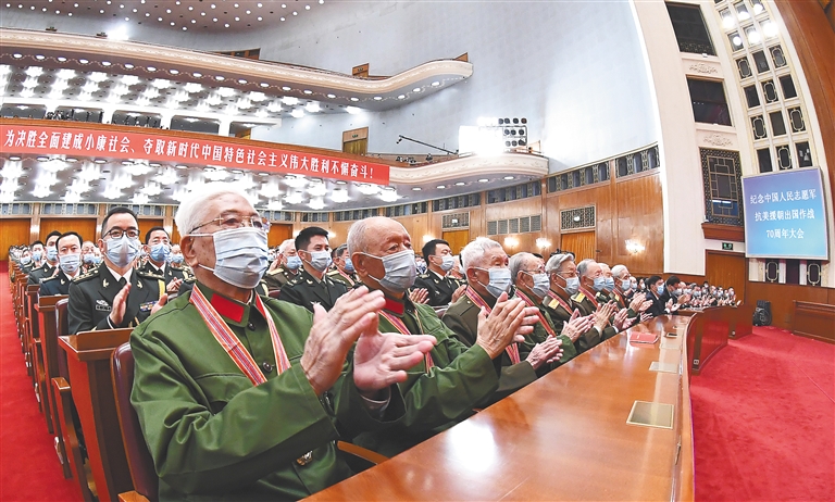 10月23日,纪念中国人民志愿军抗美援朝出国作战70周年大会隆重举行,习近平总书记发表重要讲话,全面回顾总结抗美援朝战争的伟大胜利和巨大贡献,深刻阐述伟大抗美援朝精神的历史意义和时代价值,精辟揭示抗美援朝战争的历史启示,郑重宣示捍卫国家领土主权和统一、维护地区和世界和平稳定、推动构建人类命运共同体的坚定立场和决心,凝聚起团结奋进新征程的磅礴力量。