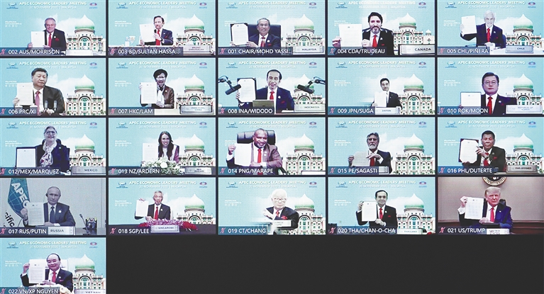 11月,国家主席习近平以视频方式接连出席上海合作组织、金砖国家、亚太经合组织、二十国集团等多场重要多边会议并发表重要讲话,继9月底10月初出席联合国成立75周年系列高级别会议后,又一次在全球多边舞台上发出时代强音,提出中国方案。一年来,中国开启元首“云外交”新模式,同国际社会密切互动,有力促进全球抗疫合作,引领世界前进方向,推动构建人类命运共同体,展现中国作为负责任大国的世界胸怀和历史担当。