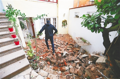 12月29日,在克罗地亚萨格勒布,一名男子在地震后经过地面的废墟。
