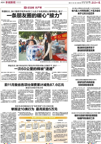 寒潮将至,海口锦绣学校外来务工人员子女收到爱心御寒物品,缘于——~~~