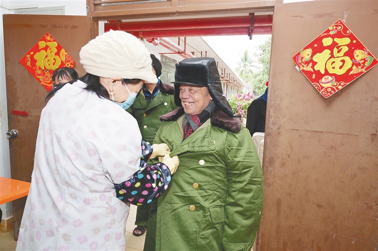 2020年12月31日,海口市琼山区红旗镇敬老院的特困老人们穿上民政部门送来的棉大衣,喜在脸上暖在心田。