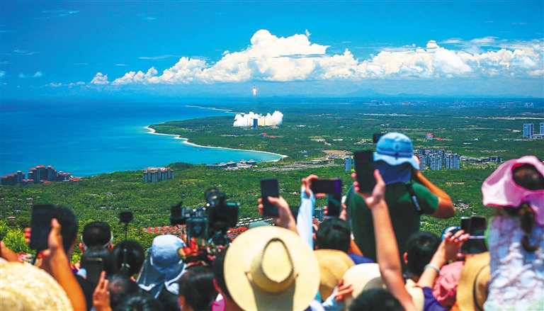 2020年11月,长征五号遥五运载火箭在中国文昌航天发射场,成功将探月工程嫦娥五号探测器发射升空;在马里亚纳海沟结束科考任务的“探索一号”科考船在海南三亚南山港码头靠泊下锚,成功实现10909米坐底纪录的“奋斗者”号也随船胜利返航。我省积极推进以南繁育种、深海科技、航天科技为代表的“陆海空”领域科技创新带动全面创新,汇聚资源,打造南繁科技城、三亚深海科技城和文昌国际航天城,发展高新技术产业,发展航空航天旅游、科普旅游,取得了丰硕成果。