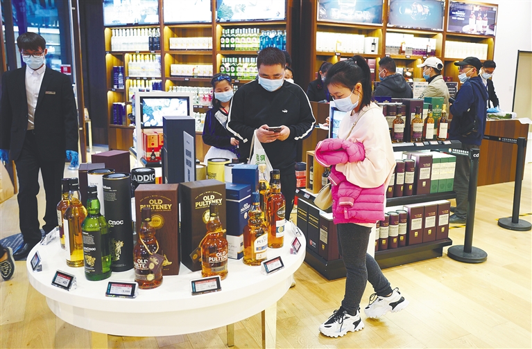 不仅景区热闹,海口免税购物也是“热”不可挡。当天,海南日报记者在位于日月广场的cdf海口市内免税店看到,前往各品牌柜台前选购商品的顾客络绎不绝,其中不少是观看完跨年演唱会后前来购物的顾客,“看演唱会+免税购物”成为元旦游海口的新风尚。