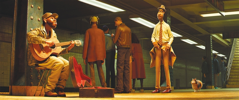 相比此前的作品,彼特·道格特此次执导的《心灵奇旅》是个显得有点残酷的故事。影片主人公乔伊最终没能找到他所期待的“希望”。乔伊是个平凡、有些郁郁不得志的小学音乐老师。他许多学生对音乐不屑一顾。他日复一日地与他们为伴,终于获得了正式教师岗位这个稳定的“铁饭碗”。但是,他一直以来却有个闪闪发光的梦想:在舞台上尽情绽放。就像影片开头那样,他只是一个穿行于人流之中、普通得不能再普通的小人物。当他好不容易获得一次在舞台上演出的机会时,却毫无预兆地掉进下水道井盖口。他死了,然后来到另一个世界:“生之彼岸”。