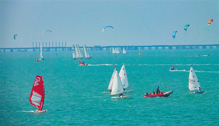 入冬以来,海口凭借优越的训练条件和气候优势,吸引了众多帆船运动的开展,丰富当地市民游客的旅游文化体育生活。