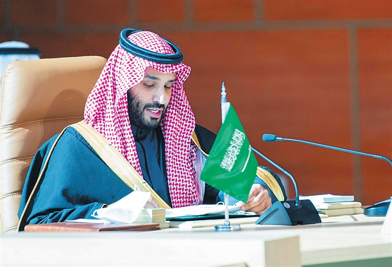 1月5日,沙特阿拉伯王储穆罕默德在欧拉出席海合会峰会。