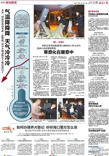 本报记者寒夜跟随海口救助站工作人员为流浪人员送御寒物资~~~