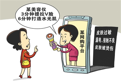 “射频、导入、红蓝光照射多功能合一”“不用去美容院,就能把医美技术搬回家”……网络社交平台上,推荐美容仪的视频、网文数不胜数,令人眼花缭乱。记者在各大网购平台上看到,不少家用美容仪在广告宣传上都标榜效果堪比“院线级”,“3分钟提拉V脸”“6分钟打造水光肌”……一款射频美容仪的店铺销售表示,产品光源和医疗美容医院里的设备是一样的,家用完全够了。