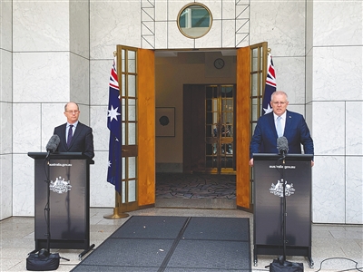 澳大利亚总理莫里森8日宣布,为阻止英国发现的变异新冠病毒在澳传播,澳将实施缩减入境人数、要求旅客在飞机上和机场内遵守“口罩令”等一系列强化防疫措施。 新华社记者 岳东兴 摄
