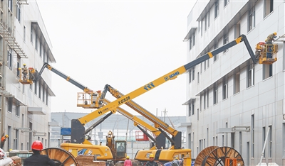 1月8日,寒意袭人,在海口美兰空港一站式飞机维修基地项目现场,建设者们正在加紧施工,一派热火朝天的繁忙景象。