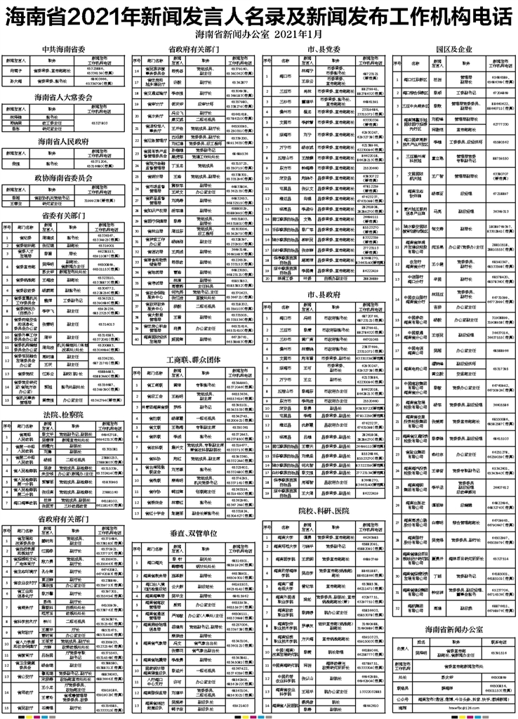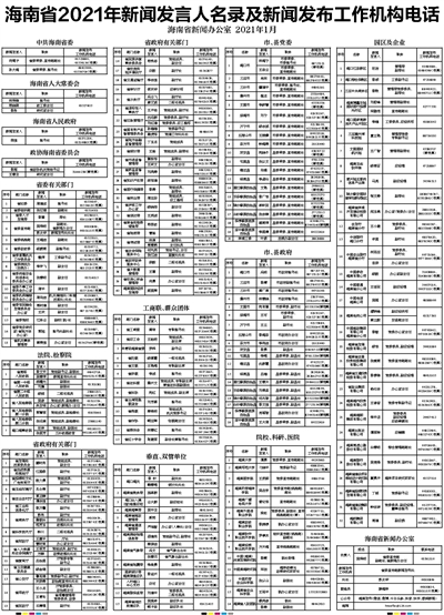 海南省2021年新闻发言人名录及新闻发布工作机构电话