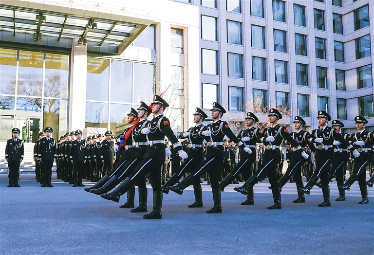 1月10日上午,伴随着雄壮嘹亮的警歌,鲜艳的警旗在公安部机关院内徐徐升起。全国公安机关受表彰先进集体和英模代表、部机关干部代表向警旗庄严敬礼,重温入警誓词,以这种特别的方式庆祝首个中国人民警察节。